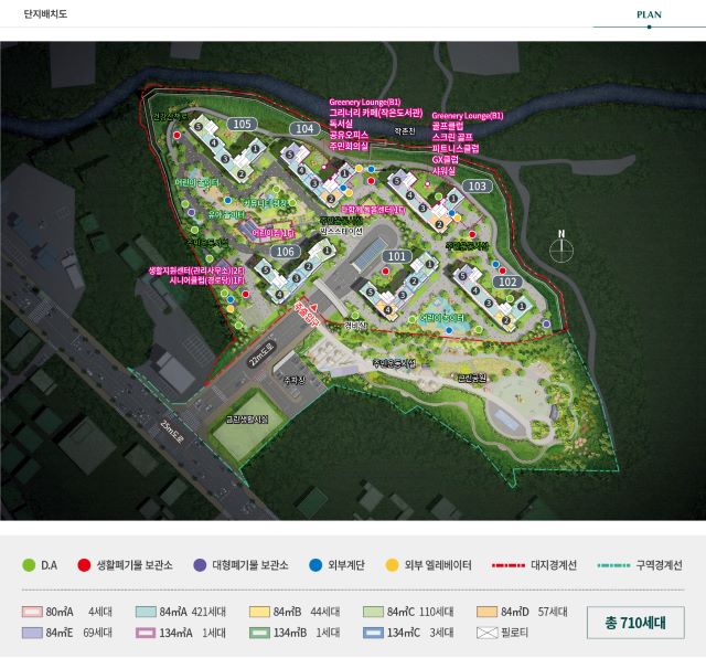 그리고 그 중심에 지하 2층~지상 29층, 6개동, 일반분양 710세대 대단지 브랜드 아파트 용인 푸르지오 원클러스터파크가 들어섭니다.